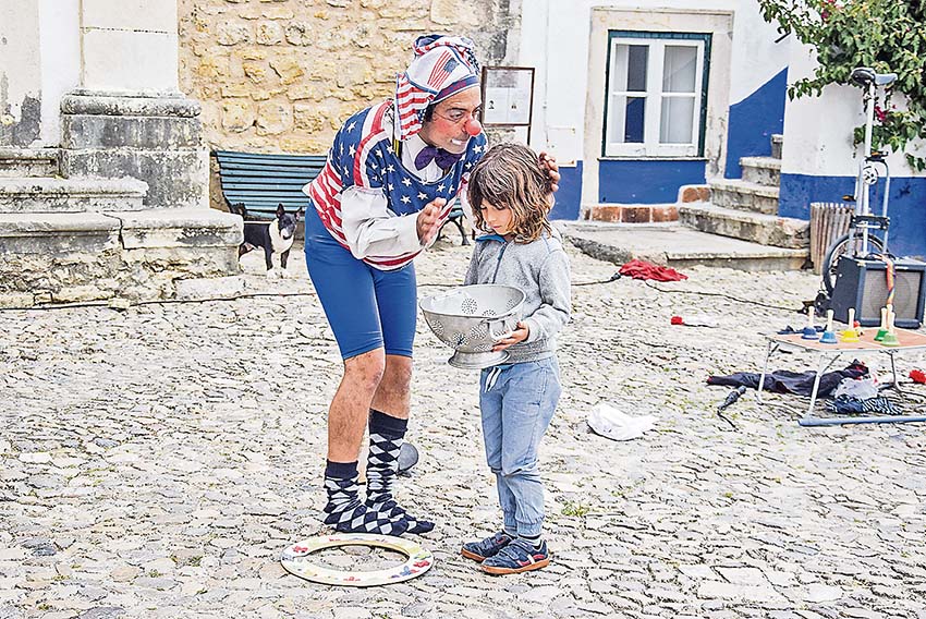 O comediante ambulante chama crianças e adultos para o ajudar no espectáculo e a resposta é pronta, com as brincadeiras a prosseguir perante o olhar atento e divertido dos que vieram para assistir ao festival e a curiosidade dos muitos turistas que chegam para visitar a vila.