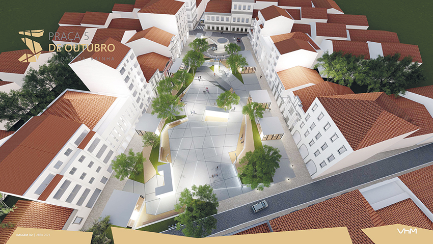 “A nova Praça 5 de Outubro assume-se como um espaço vibrante e contemporâneo, dando uma nova vida a este centro da cidade”, refere a proposta apresentada, que inclui ainda um esquema solar e iluminação noturna garantida por linhas de luz no pavimento. Prevista está também a realização de um mural cerâmico, da autoria do cartoonista António, para colocar como peça central da praça.