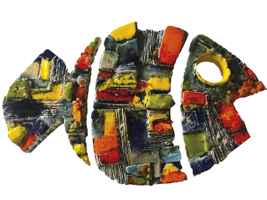 “Fazemos peças encomendadas pelas pessoas e estas que acabam por inspirar novas obras”, disse a autora. Um dos maiores painéis que já executou tinha nove metros de comprimento e tinha por tema as pedras da calçada, com diferentes formas e tamanhos. “Esse trabalho que ladeia atualmente uma piscina, originou outros”, disse a ceramista que desenvolve intervenções em parceria com arquitetos e com arquitetos de interiores.
