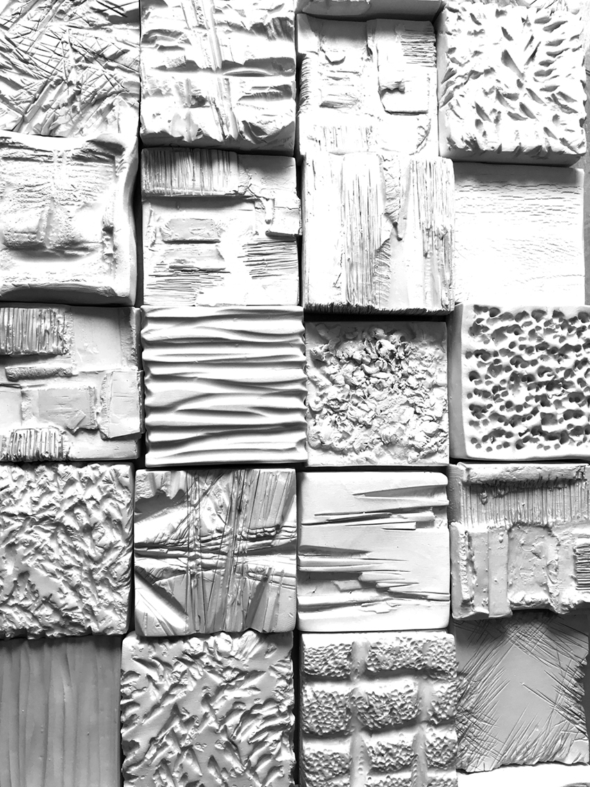 A artista está agora a trabalhar em painéis cerâmicos brancos onde se salientam as diferentes texturas.