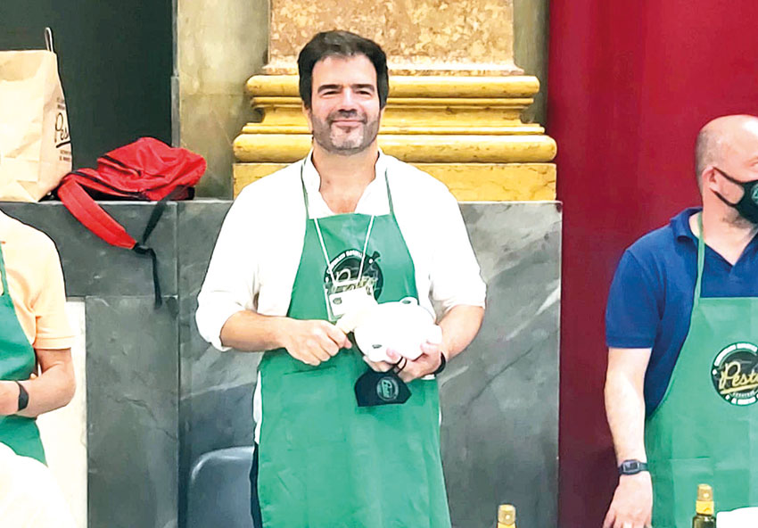 Tiago Serrenho auto intitula-se o 11º melhor do mundo a fazer pesto genovês. O jovem engenheiro do Ambiente, atualmente a residir e trabalhar no Luxemburgo, voou diretamente para Itália, no início do mês, para participar no Campeonato do Mundo de Pesto Genovês em Almofariz.