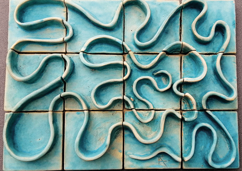 Estão presentes pequenos painéis que a autora fez em grês e foram cozidos a 1250 graus. Algumas peças foram feitos de propósito para esta mostra que permite ao público conhecer os últimos trabalhos desta autora.