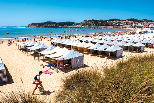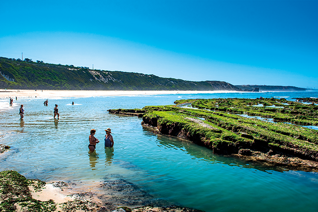 A Praia da Nazaré dispensa apresentações: tão fotogénica quanto vibrante, junta os aromas do peixe grelhado à tradição das sete saias e promete animação, surf para iniciantes, aulas de bodyboard e passeios pelo paredão. É também um dos melhores pontos para contemplar as célebres ondas gigantes no inverno. Aqui também há convites à aventura, incluindo experiências mar a dentro com direito a avistar golfinhos. Mais ao sul, a Praia do Salgado mantém um ambiente quase inalterado, com extenso areal e um ambiente apropriado para parapente e caminhadas em comunhão com a natureza. Esta é uma praia que também integra a lista das Zero Poluição, uma distinção rara para quem procura mar limpo e paisagem virgem.