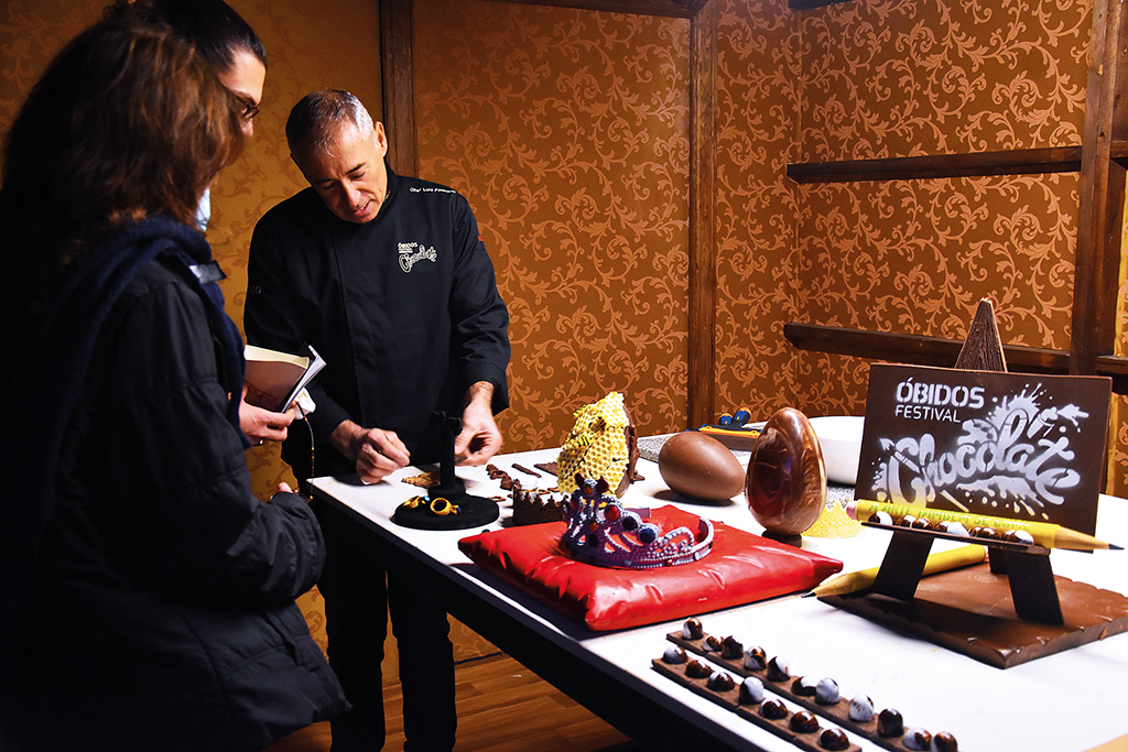 Cerca de 85 toneladas de chocolate estão em Óbidos, até 22 de março e podem ser apreciados nas suas mais diversas formas. A 22ª edição do Festival Internacional de Chocolate abriu portas no sábado, um dia depois do previsto devido às condições climatéricas adversas. Na visita inaugural o presidente da Câmara, Filipe Daniel, lançou o desafio para a criação de um bolo identitário de Óbidos, que obedeça a alguns requisitos: na sua composição tem de ter chocolate e ginja d’Óbidos, mas também poderá ter outros produtos identitários da região como a pera Rocha ou a maçã de Alcobaça. A sugestão foi dada na visita ao polo da Escola de Hotelaria e Turismo do Oeste (EHTO) e a chef Tânia Duarte acedeu prontamente. “Vou tentar fazê-lo. Na pastelaria, apesar de tudo ter técnica e ser uma ciência, tudo está ligado à criatividade”, disse à Gazeta das Caldas a ex-aluna da escola, que promete “uma novidade” para a próxima edição.