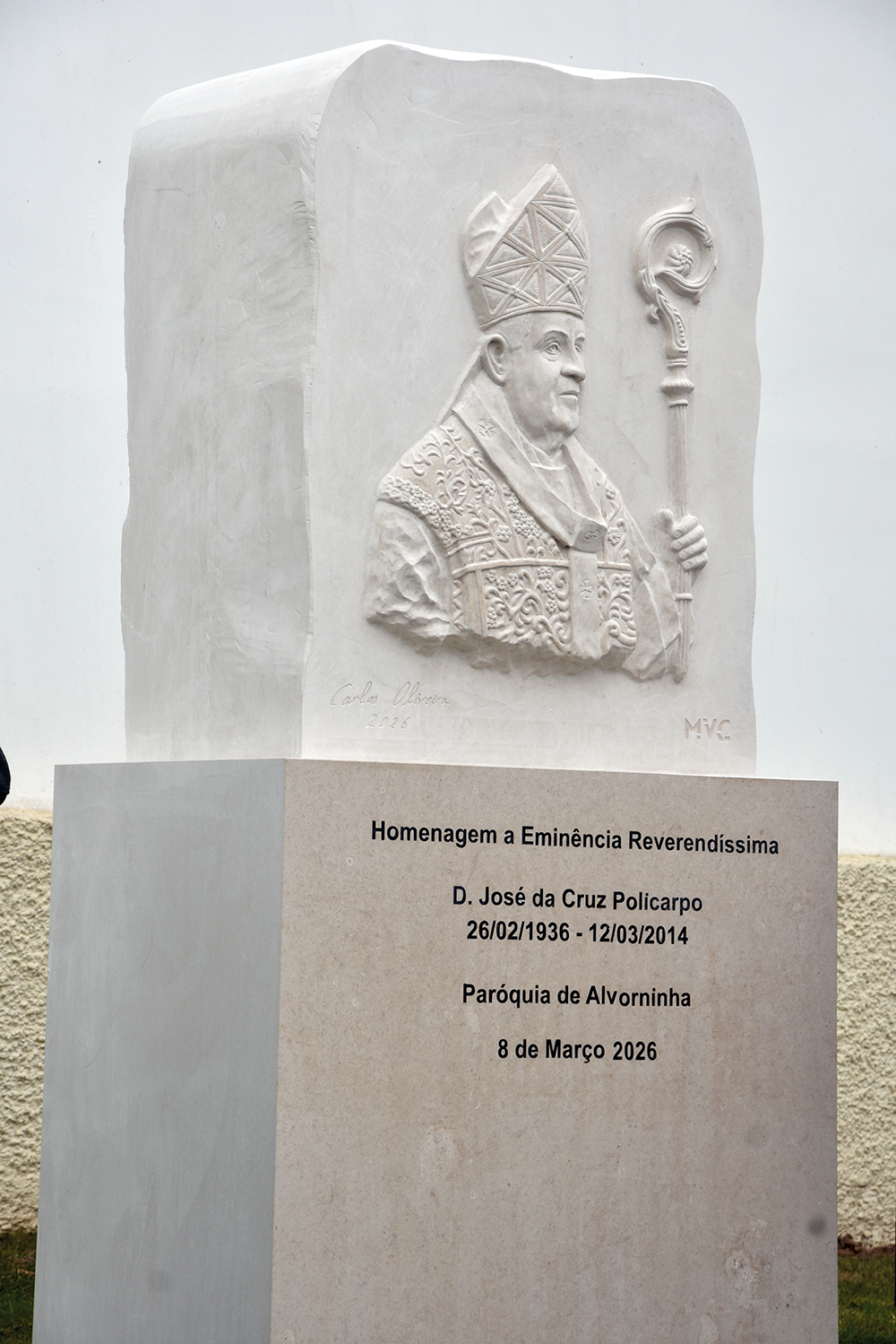 Da autoria do escultor Carlos Oliveira, o memorial é um alto relevo feito com base numa fotografia de D. José Policarpo, que a paróquia de Alvorninha selecionou. “Ele está, precisamente, com o olhar o mais longe possível, para o horizonte”, salientou o autor que, mais tarde, durante o almoço convívio, viria a partilhar um vídeo da elaboração da peça artística em pedra, tendo como parceira a empresa MVC – Mármores Vigário e Coelho, com quem Carlos Oliveira trabalha há cinco anos.
