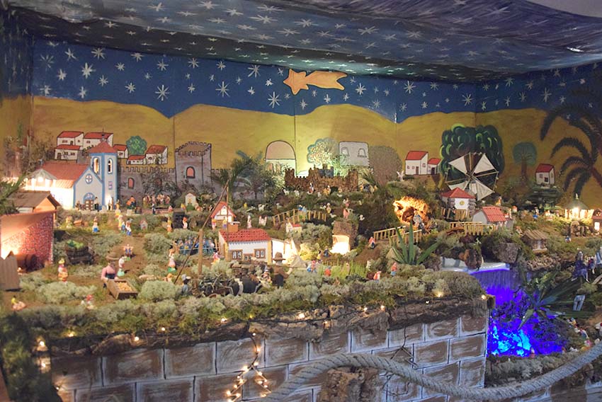 Todo o presépio assenta numa estrutura de madeira, coberta de musgo natural. Do lado de fora da residência também a fachada está decorada como se de um castelo medieval se tratasse.