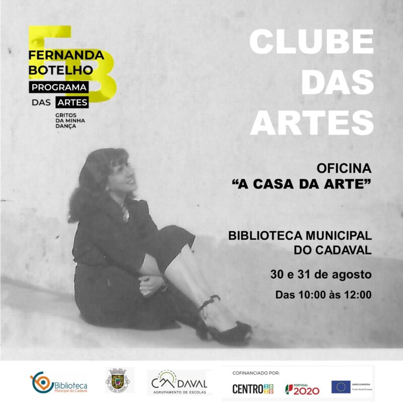 O ateliê Clube das Artes – Oficina “A Casa da Arte” tem a duração de quatro horas repartidas entre os dias 30 e 31 de agosto, das 10h às 12h. O ponto de encontro é a Biblioteca Municipal do Cadaval. A organização é da Biblioteca Municipal do Cadaval e Associação Gritos da Minha Dança (inscrições gratuitas em: http://www.cm-cadaval.pt/Oficina-A-Casa-da-Arte-2021).