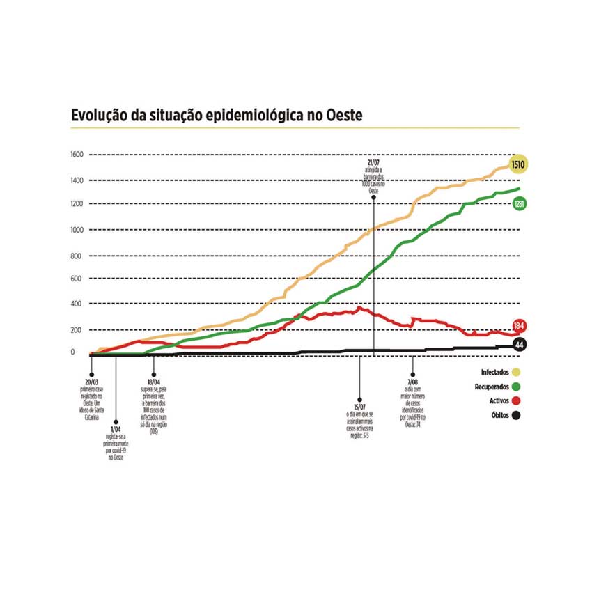A 21 de Julho foi registado o milésimo caso nos concelhos do Oeste e, esta semana, ultrapassou-se a barreira dos 1500 infectados com o novo coronavírus.