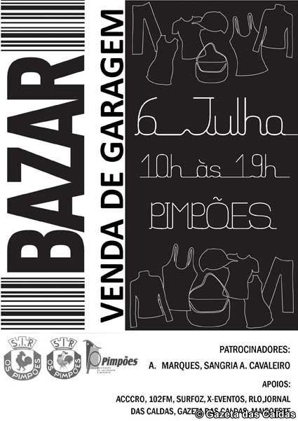 Amanhã, sábado, 6 de Julho, entre as 10h00 e as 19h00 vai realizar-se, nos Pimpões, mais um Bazar – Venda de Garagem. Os interessados poderão colocar em exposição, no espaço físico da colectividade, os objectos que pretendem vender.