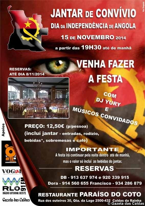 As reservas podem ser feitas até ao dia 8 de Novembro através dos tel. 913637974, 920339915 ou 934286879. Na festa vão participar o DJ Yury e músicos convidados.