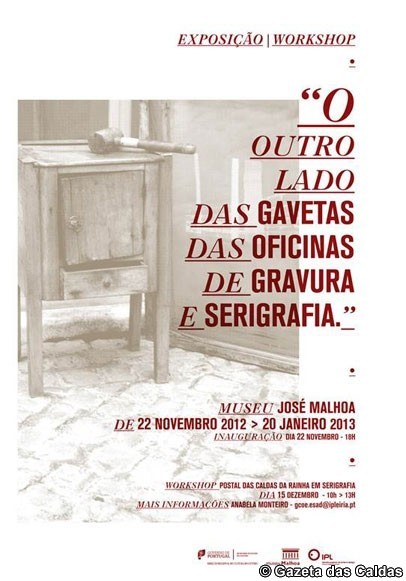 “O outro lado das gavetas e das oficina de gravura e de serigrafia” é como se intitula a exposição que se encontra no Museu José Malhoa. No âmbito desta mostra vai realizar-se um workshop sobre “postais das Caldas” que se vai realizar a 15 de Dezembro no Museu de José Malhoa.