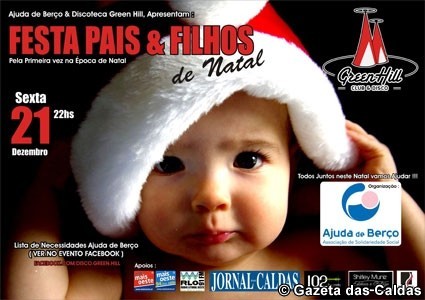 Hoje, dia 21 de Dezembro, a partir das 22h00, vai realizar-se na discoteca Green Hill uma Festa Pais & Filhos, a favor da Ajuda de Berço na qual a entrada, em vez de ser paga em dinheiro custa apenas a entrega de bens que serão oferecidos aquela instituição.