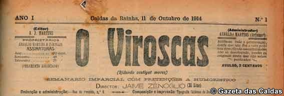 Hoje, 10 de Outubro, no Café Central, pelas 21h30, será assinalado o centenário do jornal satírico local “O Viroscas”. O primeiro número foi lançado em 11 de Outubro de 1914 e o Conselho da Cidade convidou Jorge Mangorrinha para explicar a importância, os contextos e os conteúdos deste periódico que foi publicado até 1915.