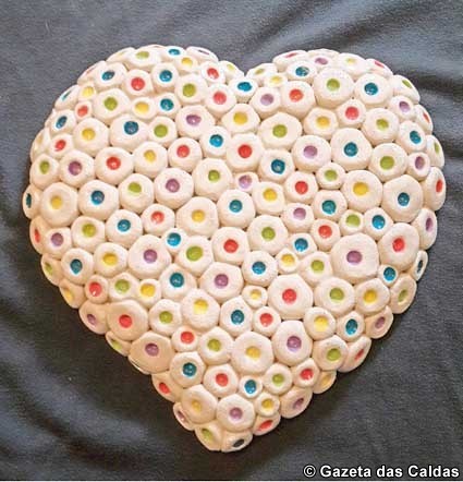 Para realizar “Alegrria”, Cláudia Canas inspirou-se no espírito deste ano novo, altura em que “florescem os projectos, os sonhos e as esperanças”, disse. E assim nasceu um grande coração, feito por pequenos elementos, com diferentes cores, que é “alegre e que ria” e daí o nome da própria obra que é feita com pasta de grés chamotada e decorada com vidrados coloridos. A peça foi cozida a 1200ºC em atmosfera oxidante.