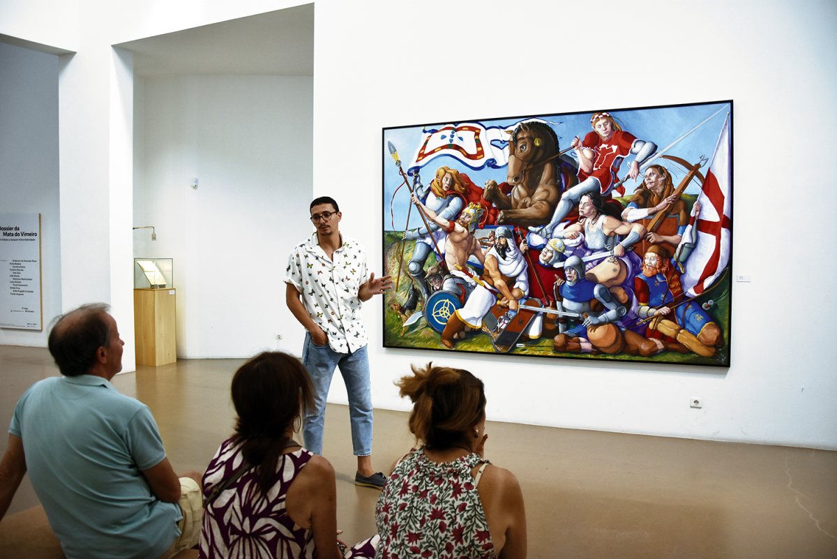 “Batalha Real” é como se intitula a pintura a óleo de António Cassiano Santos, sobre a Batalha de Aljubarrota e que está patente no Armazém das Artes, em Alcobaça e que celebra os 640 anos da Batalha de Aljubarrota com uma visão contemporânea e até algo provocadora.