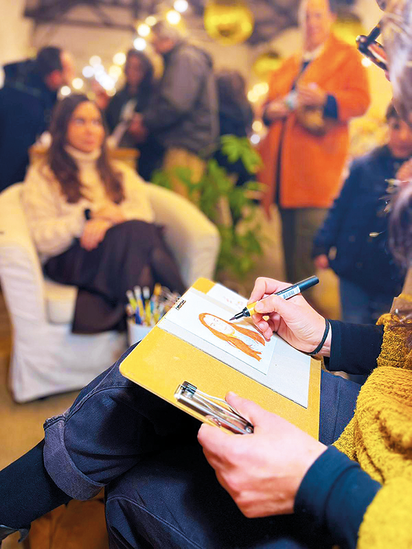 Ana Sílvia Agostinho reconhece que há um lado performativo na ilustração ao vivo e diz que “não há dinheiro nenhum que pague o momento em que a pessoa se vê no desenho! É sempre uma surpresa!”.