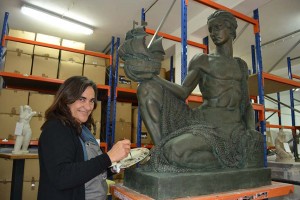 “As Caldas vai ficar com um espólio importante da época do Estado Novo”, comentou a técnica, que conversa sem parar o seu trabalho, limpando, pincelando e reparando as peças. “Na sua maioria são maquetas da obra pública do escultor”, disse a restauradora, de 52 anos, que está a trabalhar na colecção desde Setembro passado. A cada uma das peças do futuro museu é feita a limpeza e a sua manutenção. “Optámos por fazer reconstruções muito minimalistas”, disse, acrescentando que não há nada que seja repintado, apostando apenas nalguns retoques que respeitam a integridade física das obras. Para alguns trabalhos mais complexos de restauro, a técnica tem contado com a colaboração do escultor alcobacense José Aurélio, que foi aluno de Leopoldo de Almeida. Este, contactado pela Gazeta das Caldas, mostrou-se muito satisfeito por estar a colaborar neste trabalho que lhe permite “pôr-se à prova” dado que auxiliou a sua amiga Arlinda na recuperação de modelos em barro e em gesso. Um dia espera que haja também alguém que possa restaurar as suas peças, como fez às do seu professor, apesar deste ter vivido numa época política diametralmente oposta aos ideais políticos do alcobacense.