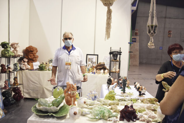 Vítor Lopes Henriques tem 74 anos e há 62 que se dedica à cerâmica. Sobretudo às malandrices e não podia estar mais satisfeito com a sua estreia na FIA, para onde levou malandrices e também um grande busto de Bordalo Pinheiro, entre outras peças dos irmãos Constantino.