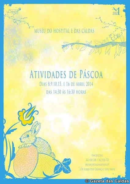 No Museu do Hospital e das Caldas vão realizar-se actividades  de expressão plástica nas tardes dos dias 8, 9,10, 15 e 16 de Abril destinadas a crianças entre os seis e os 12 anos. Mais informações pelo e-mail mushospcaldas@sapo.pt ou tel. 262830723.