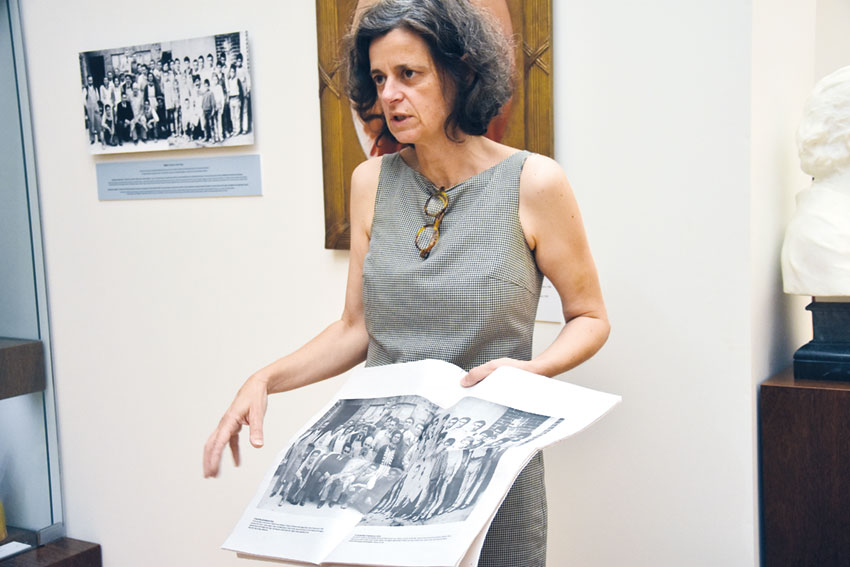 “Há uma hegemonia deste artista cá nas Caldas, apagando muito do trabalho feito por outros autores”, disse a doutoranda mencionando o caso de Manuel Mafra que é muito menos conhecido mas que na verdade era fornecedor da Casa Real e há peças deste artista em museus “como no britânico Victoria and Albert Museum, em Londres”. Presente está também uma fotografia de operários da Fábrica Belo, que data de 1949, onde estão funcionários de várias idades, incluindo mulheres operárias.