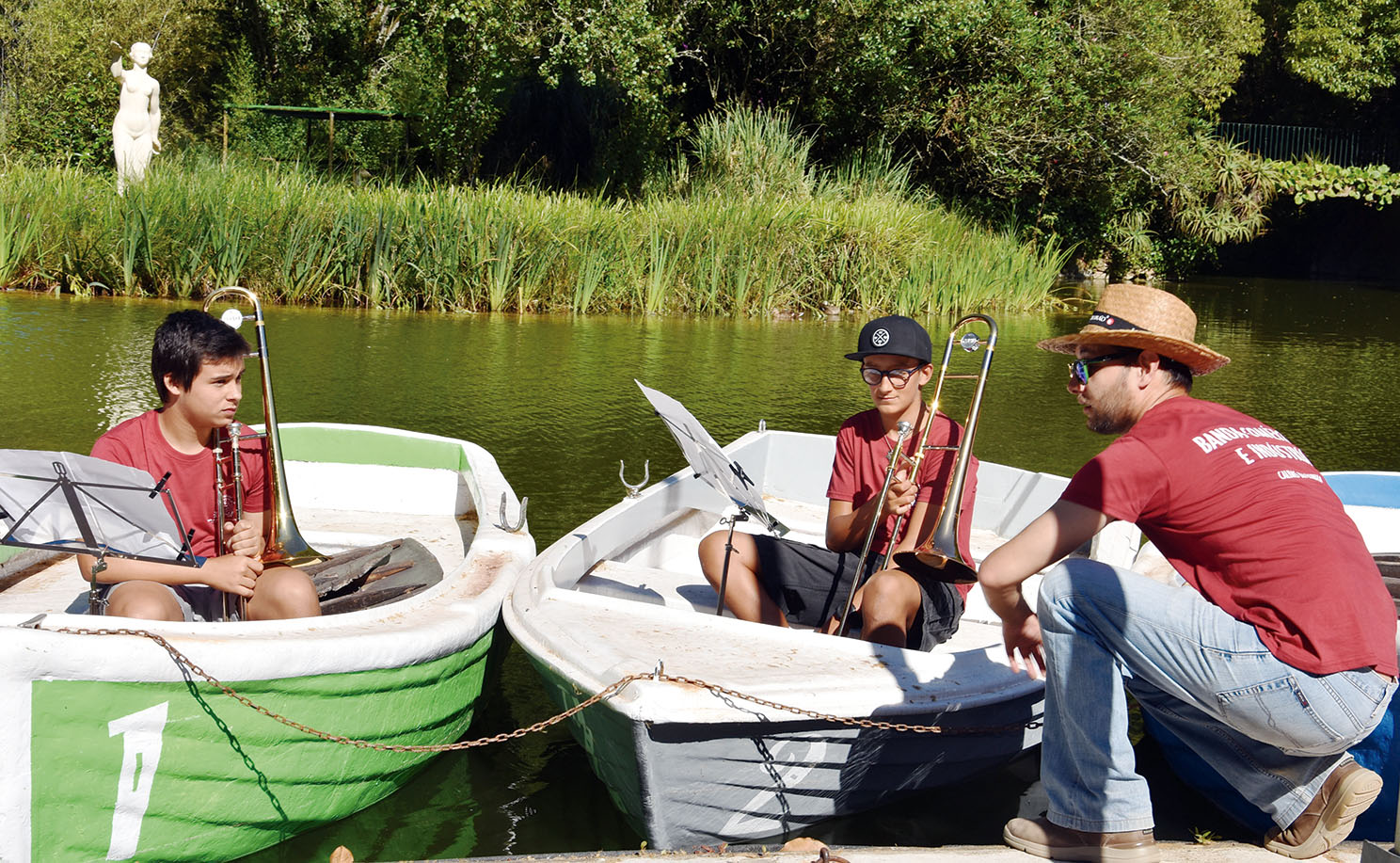 O que faziam dois músicos de sopros a tocar dentro dos barcos do Lago do Parque D. Carlos I? Ou um grupo de mais músicos de sopros a tocar no relvado, situado nas proximidades do Museu de José Malhoa? O espaço onde funcionou o parque de campismo serviu também de spot de filmagem para três músicos de percussão.