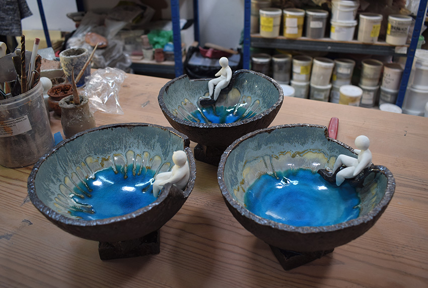 Hoje possui o seu próprio espaço nas Gaeiras dado que há nove anos transformou um antigo lagar em oficina cerâmica. Assim foi no concelho vizinho que foi criada “Bem-Estar”, a peça que se inspira na experiência da autora que em pequena fez tratamentos no Hospital Termal, incluindo idas à piscina.