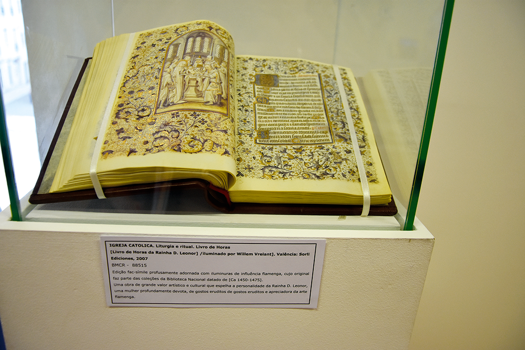 Presente está um fac-símile de um Livro de Horas da própria Rainha e cujo original se encontra na Biblioteca Nacional. Trata-se de uma obra de devoção medieval, popular entre a nobreza e a elite entre os séculos XIV e XVI. Eram usados para a oração privada e têm textos litúrgicos como salmos e orações para as diferentes horas do dia. Estão expostos dois manuscritos do século XVIII e entre os impressos, o mais antigo data de 1726. Estão também presentes várias edições da Gazeta das Caldas, semanário que está a celebrar o seu centenário e não lhe faltam artigos sobre a Rainha ao longo da sua história. Inclui outras publicações periódicas como Os Cavacos e O Progresso, além de postais ilustrados e fotografias que mostram a evolução da própria cidade.