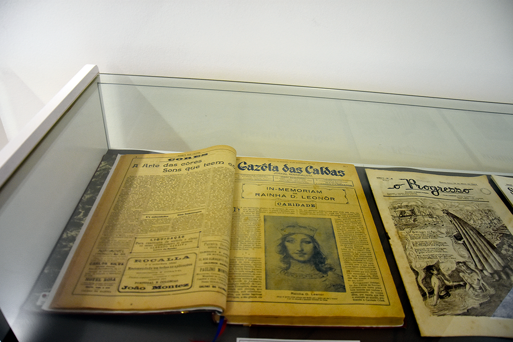 Em várias vitrines podem ser vistos o Livro do Compromisso, fundacional da Hospital Termal, várias referências a Gil Vicente, protegido de D. Leonor e que representou autos na cidade como foi o caso de Auto de S. Martinho que foi estreado na Igreja do Pópulo em 1504.