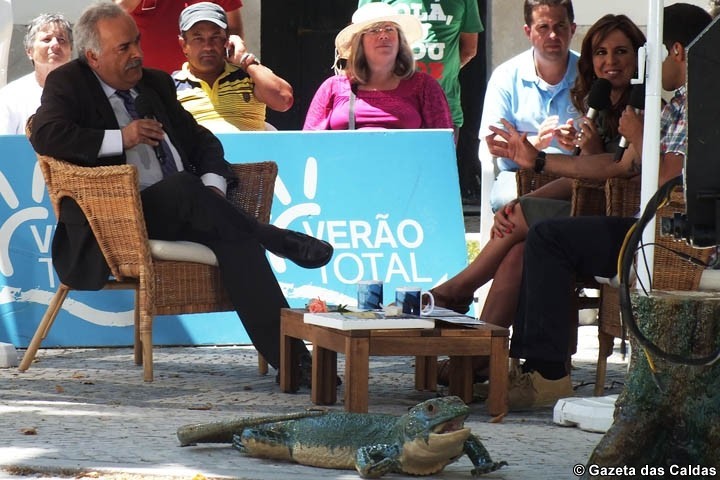 À conversa com os dois apresentadores estiveram, entre outros, o presidente da Câmara, Fernando Costa e os autarcas Tinta Ferreira e Vasco Oliveira, bem como Daniel Pinto, director da Escola de Turismo do Oeste, e a designer Maria José Rocha.