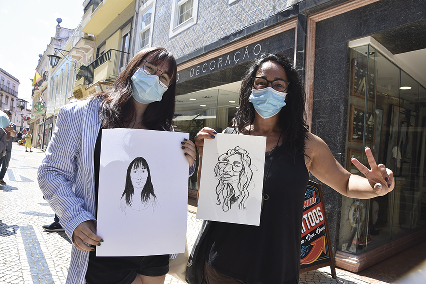 A Rua das Montras, já habitualmente animada, ganhou mais vida com os artistas que se instalaram em mesas e cadeiras, aguardando por quem quis ser retratado. E não foi preciso esperar muito tempo até que gente de todas as idades lhes tivesse pedido um “retrato”, tendo até sido preciso aguardar em fila pela vez.