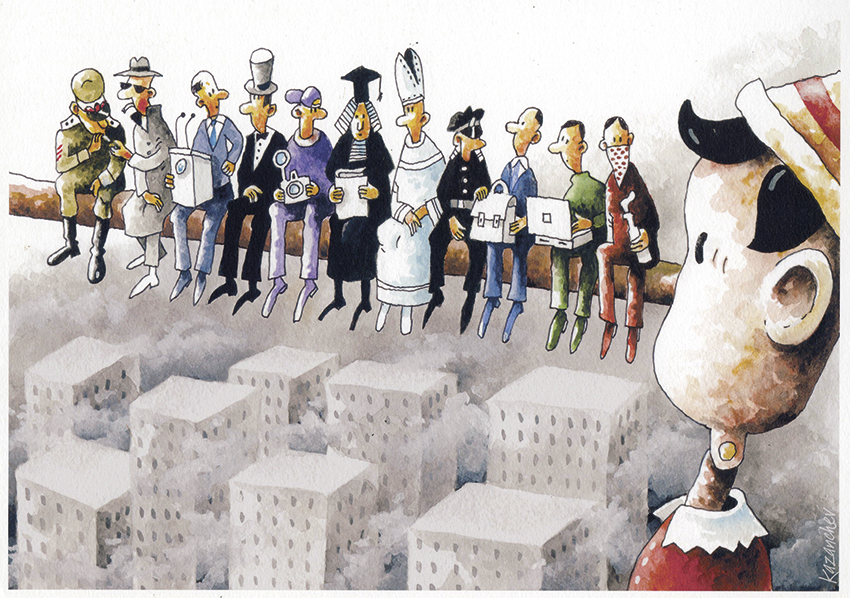 Na categoria Cartoon Editorial, o 1º Prémio foi atribuído ao ucraniano Konstantin Kazanchev, por um desenho publicado na plataforma de cartoons holandesa Cartoon Movement. Já o 2º Prémio foi para Trump Riot, do australiano David Rowe, publicado no jornal Australian Financial Review.