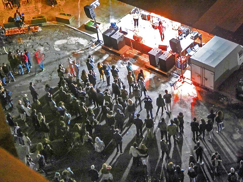 Durante dois dias a Rua Tenente Sangreman Henriques esteve animada. Logo à entrada do prédio com o número 32 está uma placa que anuncia “Casa da Mona”. Antes de subirmos as escadas até ao 3º andar vemos um cartaz elaborado pelos residentes desta casa que pede a compreensão a todos os vizinhos: 27 e 28 Maio haverá mais barulho e pessoas a circular. Assim manda a tradição do Caldas Late Night, que nasceu e sobreviveu ao longo de 20 anos precisamente graças a jovens como estes.