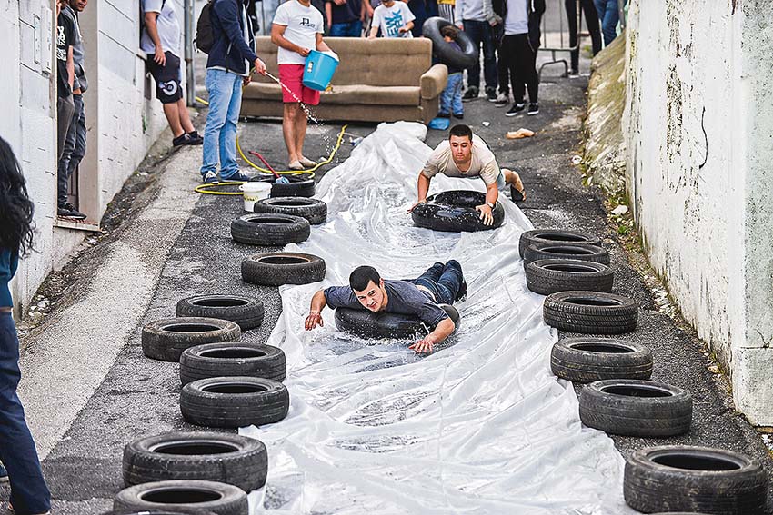 Madalena Ferrari é outra estreante e espera sentada com os colegas pelo sinal de partida. “Vimos vídeos e fotos na internet e achámos muito divertido, pois é uma actividade diferente, que faz lembrar as brincadeiras que tínhamos em criança”.