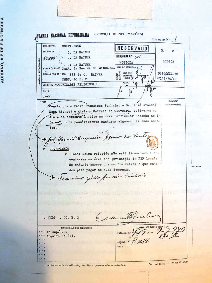Durante a sessão houve vários apontamentos musicais e foi referido o documento da GNR para a Pide sobre o concerto de Zeca Afonso, Adriano Correira de Oliveira e de Francisco Fanhais, que teve lugar no serão de 4 de julho de 1970, no Inferno D’Azenha, que fica na Quinta de Santo António. Segundo Irene Pimentel, o relatório “está muito bem descrito”, algo que não era nada habitual, pois, por norma, “continham erros e imprecisões”. Próximo evento da AJA Caldas decorrerá, a 14 de outubro, no Museu do Hospital e das Caldas.■