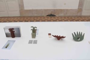 A outra proposta apresentada por Vítor Reis tem a ver com o tipo de trabalho que costuma desenvolver e chama-se “O olho que encontra”. Ambas foram construídas por lastra em grés com vidrado mate.