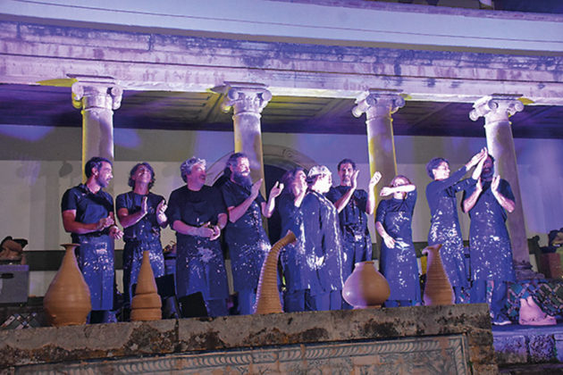 Uma das ceramistas, Xana Monteiro tinha ligações com o grupo de teatro ACERT (Associação Cultural e Recreativa de Tondela) cujos responsáveis deram uma ajuda ao grupo de ceramistas para dar um fio condutor aos seus espectáculos. Na actuação, Ana Lousada é a “maestrina” do grupo e interpreta uma senhora muito rígida que tem o papel de interligar os restantes ceramistas que se encontram a trabalhar à roda e a criar novas peças.