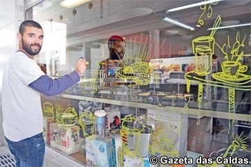 Logo de manhã era ver alguns estudantes de caneta em punho a começar a dar nova vida às lojas caldenses. “Algumas pessoas no início ainda temeram que se tratasse de vandalismo, mas nós depois explicámos e acharam que afinal era muito boa ideia”, disse Kevin Claro, 23 anos, que é de Aveiro e foi um dos estudantes que quis participar nesta iniciativa.