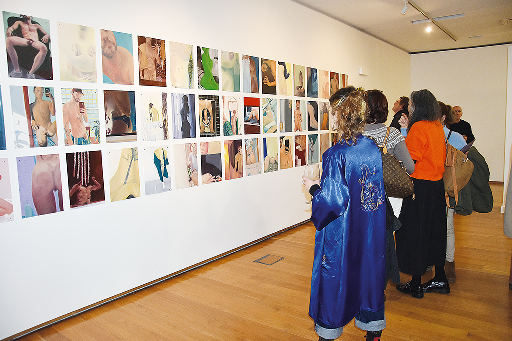 Na última visita técnica que o curador fez aos ateliers destes dois autores – que vivem e trabalham nas Caldas – ficaram logo resolvidas três áreas da exposição: a do fundo com grandes pinturas do mundo natural e mais duas áreas com desenhos e estudos de cada um deles. Numa delas, o curador quis trazer a parede tal e qual existe no atelier de Bartolomeu de Gusmão. E ela foi reproduzida nesta exposição onde “aproveitámos um quarto dos trabalhos… Tudo ficou resolvido num trabalho intenso de uma semana”, contou Óscar Faria, que também quis colocar uma mesa posta no meio da exposição onde foi servida a champanhe da inauguração.