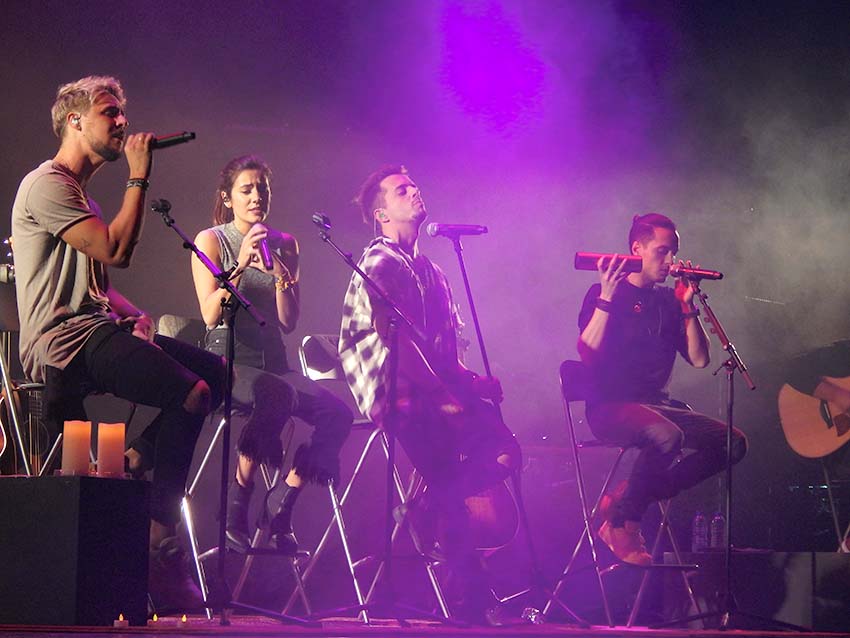 “Na na na”, “Agora é tarde”, “Era eu”, “Tempo para quê”, “Mentiras”, “Adeus e as melhoras” e “Não faço questão” foram algumas das músicas tocadas ao longo do concerto, que também contou com a participação especial de Mia Rose. A jovem cantora que deu os primeiros passos no Youtube lançará em breve um álbum que incluirá um tema com os D.A.M.A: “Qualquer coisa”. A namorada de Miguel Cristovinho abriu o espectáculo e voltou a subir ao palco uma vez mais para cantar com o trio. “A Mia já faz parte da família D.A.M.A, por isso faz todo o sentido convidá-la. Só enriquece o nosso concerto”, disse Francisco “Kasha”.