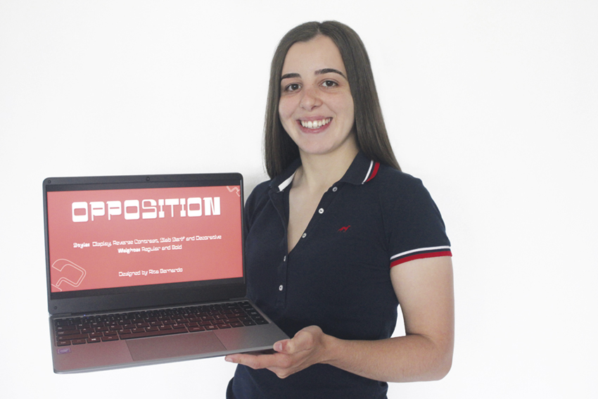 “É gratificante ver o meu trabalho a tomar dimensões acima das minhas expetativas e a ser reconhecido”, disse a autora do tipo de letra Opposition, assim designada por possuir um grande contraste em cada caractere, dando a ideia de oposição entre cada elemento de cada caractere.