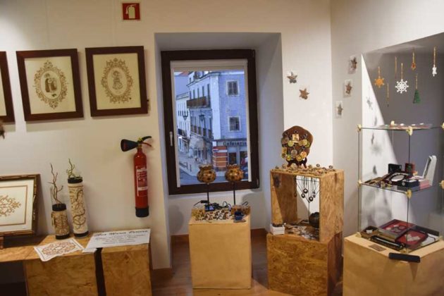 A exposição no Posto de Turismo acolhe várias propostas de cerâmica desde os peixes e polvos feitos com base em olaria de Jorge Lindinho, as obras contemporâneas e decoradas com andorinhas de Pedro Brás, as propostas em barro branco de Maria Lurdes Sobreiro até aos originais presépios artesanais de Vitor e Júlia Lopes. Podem ser apreciados os bonecos de trapos de Graciete Neto, os presépios de Margarida Lopes e as recordações das Caldas e bijuteria de Anabela Costa e as propostas de porcelana fria de Sandrina, da marca Suricata. Marcam também presença as peças utilitárias em madeira de João Ricardo, as rendas frioleiras e cabaças decorativas da Socriarte e os quadros – alguns sobre temas religiosos – feitos com missangas de Natália Diaconu. Podem também ser apreciadas as caixas de madeira Isabel Mendes, peças em grés de Teresa Alves, bordados das Caldas de Ana Pereira, quadros e telhas decorados com pontilhismo de Ana Correia.
