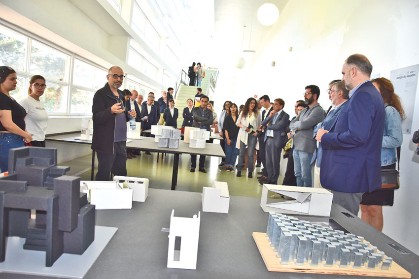 Dia 25 de maio de 2022. A semana de celebração dos 30 anos da ESAD já ia a meio e por toda a escola havia centenas de jovens a apresentar os trabalhos. Alguns no espaço exterior participavam na iniciativa das cozinhas efémeras, que é desenvolvida por alunos do 2º ano do curso de Design de Ambientes e serviam bebidas e aperitivos a quem quisesse. De resto, este curso mudou de nome, designa-se agora Design de Espaços, ficando assim mais consonante com o trabalho que é desenvolvido.
