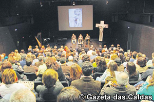 Escultura-Sacra-#1A escultura de arte sacra “Ut Christus Ecclesiam Amavit”, feita pelo artista caldense Carlos Oliveira e pelo padre Miguel Jorge Pereira, vai ser entregue ao Papa Francisco no Vaticano, no próximo dia 18 de Junho. Na sexta-feira, 23 de Maio, decorreu um serão cultural em volta desta obra que contou com alguns testemunhos sobre o tema e ainda com momentos musicais com Rão Kyao.