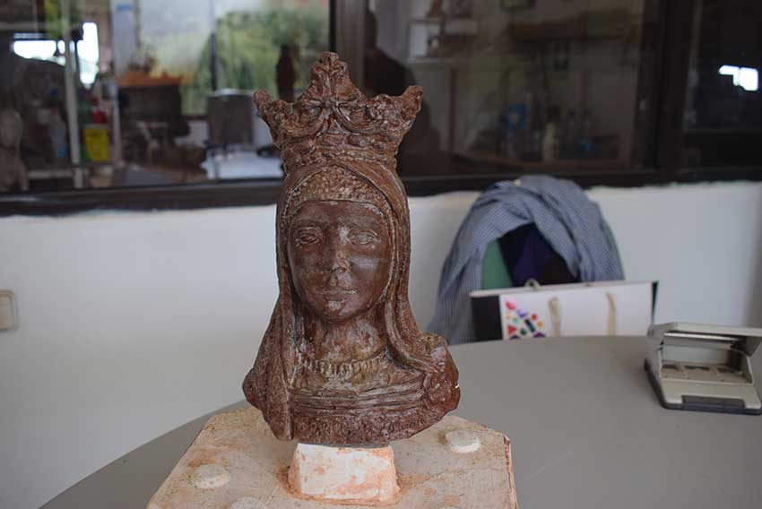 “Dei alguns traços mais contemporâneos ao seu rosto”, disse Carlos Oliveira que agora pretende comercializar esta sua homenagem à fundadora da cidade. A peça dedicada à Rainha tem uma base em pedra.
