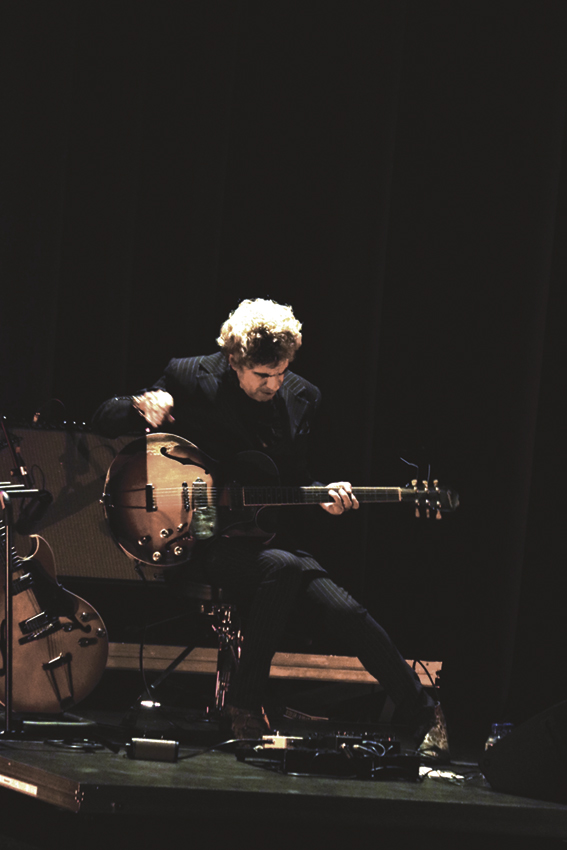 Em palco, apenas uma cadeira, onde o músico se sentou, e três guitarras, que foi utilizando numa atuação bastante intimista, quase como se o artista recebesse estes quase 300 amigos na sua casa ou no seu estúdio para lhes mostrar o que tem feito.
