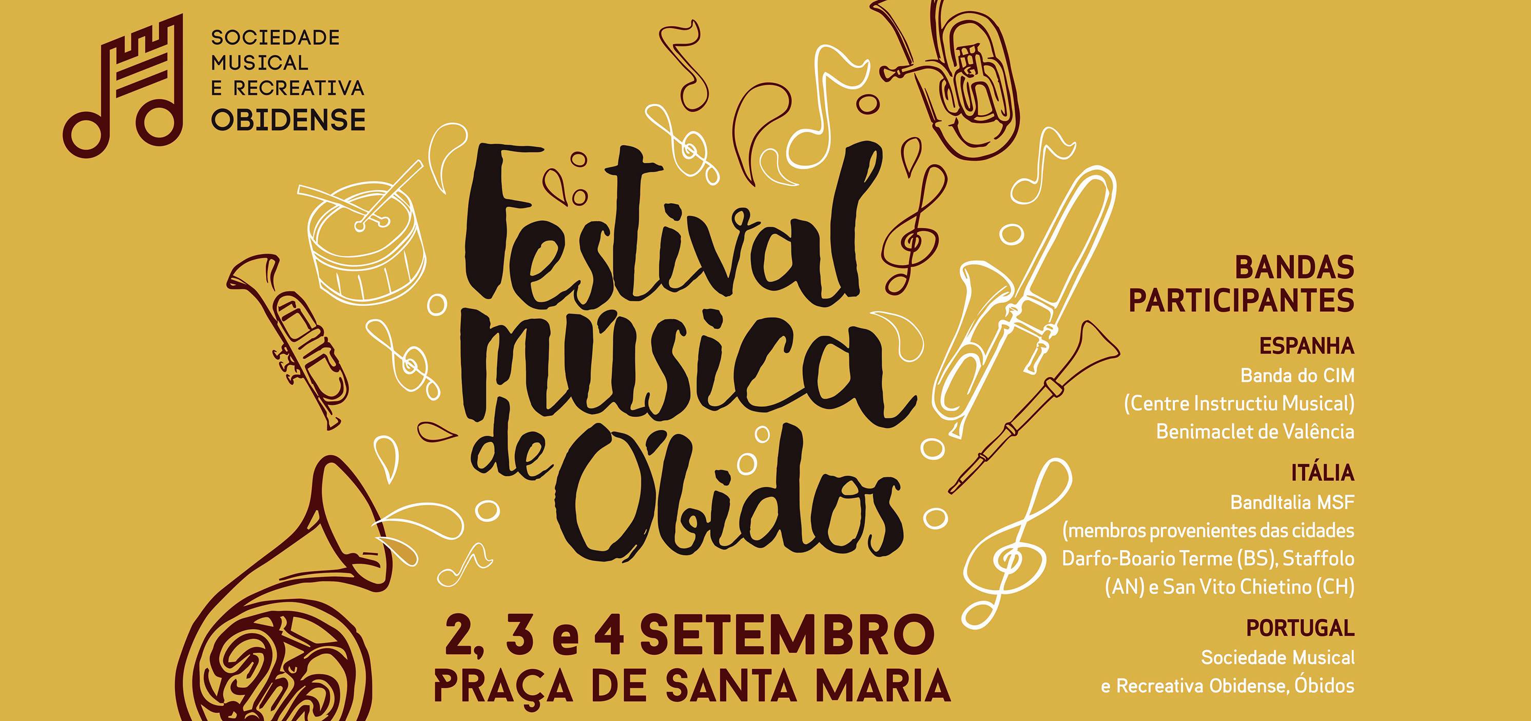 Realiza-se de 2 a 4 de Setembro o Festival de Música de Óbidos que terá como palco principal a Praça de Santa Maria. O evento é organizado pela Sociedade Musical e Recreativa Obidense (SMRO) que convidou a banda do Centre Instructiu Musical Benimaclet (Valência) e a BandItalia MSF (com músicos das províncias italianas de Darfo Boario Terme, Staffolo e San Vito Chietino).