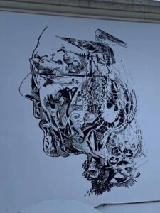 O perfil de Ferreira da Silva, artista plástico que viveu e trabalhou nas Caldas da Rainha durante várias décadas, tem cinco metros de altura por 3,5 metros de largura – e foi feito pela artista caldense no edifício da administração do Hospital das Caldas.