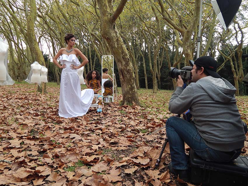 “Adoro a zona Oeste e as Caldas oferece uma grande diversidade de espaços e um clima interessante para fotografar. Além disso está muito próxima de Lisboa, onde tenho um estúdio, o que facilita a logística da sessão”, disse João Carlos à Gazeta das Caldas, enquanto preparava o cenário na Mata. Neste local pretendeu-se recriar o sonho de menina da estilista angolana com uma modelo de sete anos que finge costurar o vestido de uma manequim adulta.