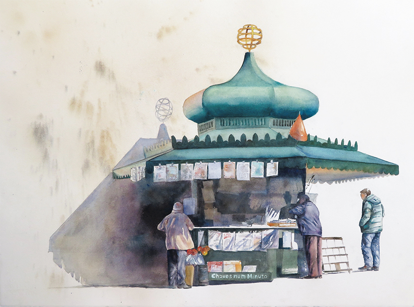 “A retoma está a acontecer de forma lenta…”, contou o artista que é curador da International Watercolour Meeting of Caldas da Rainha à Gazeta das Caldas. É também curador do Encontro Internacional de Aguarela de Santa Cruz e do 1º Festival Internacional de Aguarela de Portugal. Para além da fachada da padaria Taboense, que fica na Praça da República, este autor tem outros trabalhos de ruas caldenses, de Torres Vedras (onde vive) e de Lisboa. Um dos trabalhos é dedicado à estação de comboios do Bombarral.