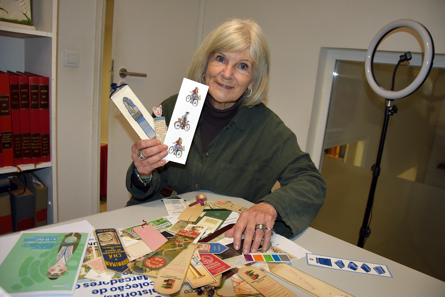 Tem mais de 72 mil marcadores de livros que expõe regularmente pelo país. Contadora de histórias, também organiza tertúlias no Bombarral